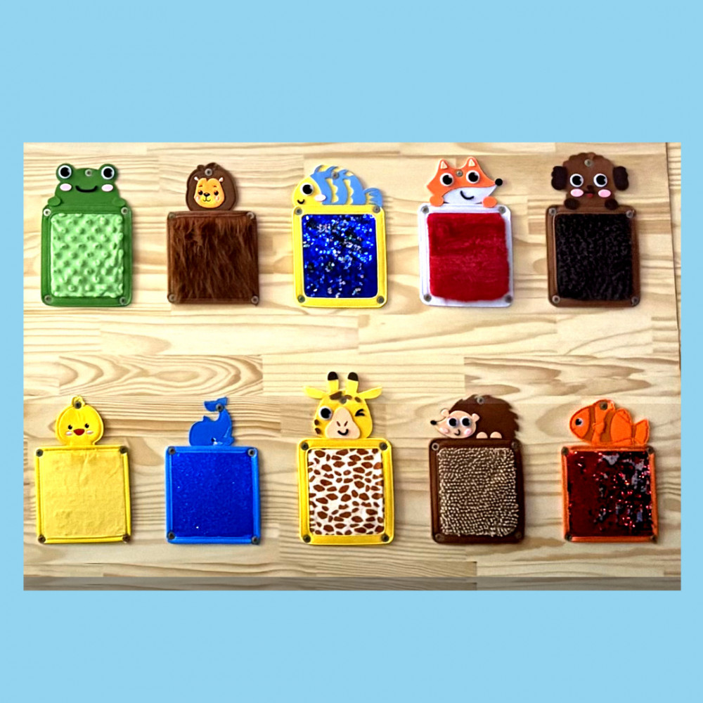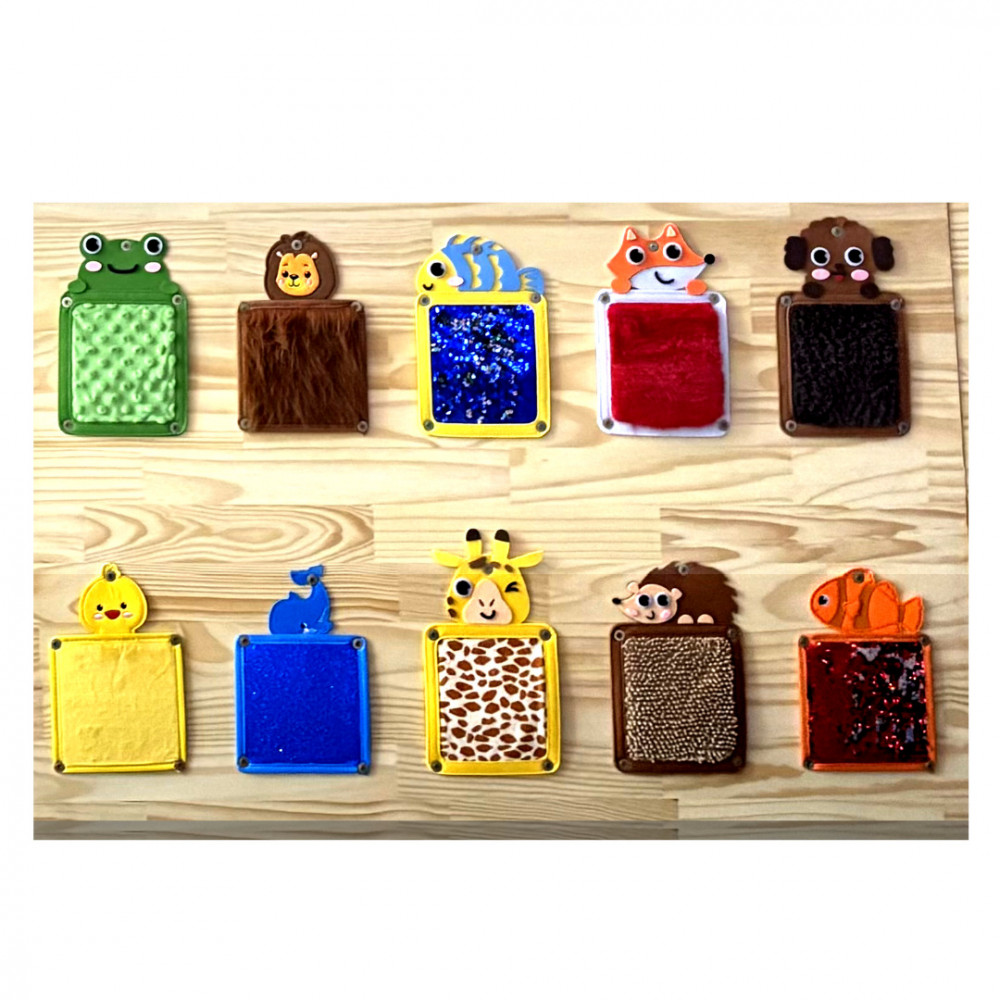 - Contém 10 tapetes sensoriais variados