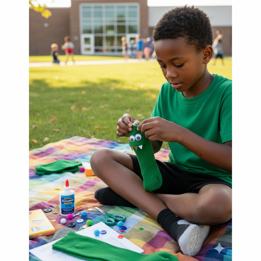 Com um tecido macio e elástico, são perfeitas para serem recheadas, costuradas, cortadas e decoradas (como o menino na imagem, transformando-a em um monstrinho). Seja para projetos escolares, decoração de festas ou presentes únicos, a meia verde oferece uma tela em branco para sua criatividade.